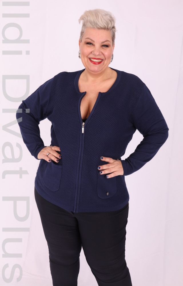 Sötétkék anyagában mintás zippes vékony kötött kardigán