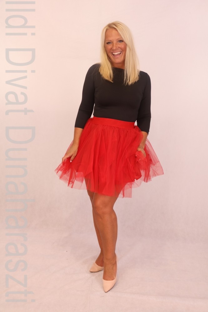Kikiriki piros színű, tüll anyagú, derekán körgumis, A-vonalú szoknya.