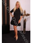 La Luna fekete színű, zsebes, mell részén gombos, alul fodros, lefelé bővülő ingruha.