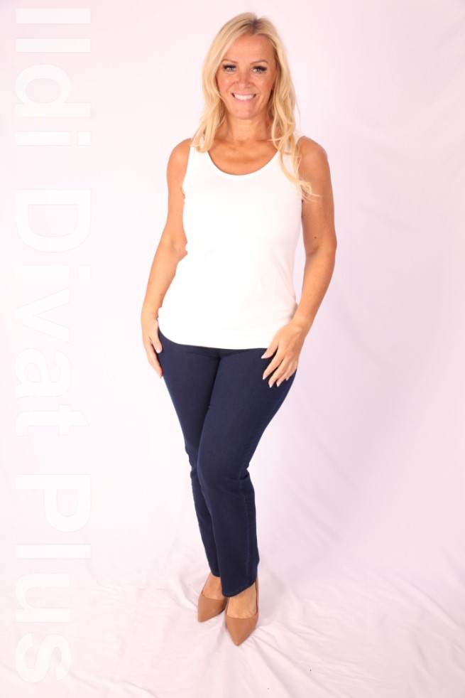 Latynka ekrü színű, kerek nyakú, karcsúsított fazonú trikó.