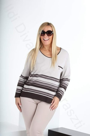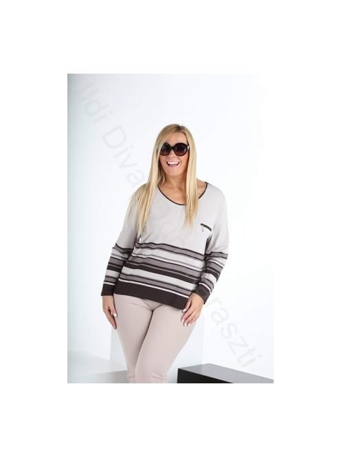 Livello Di Vita barna-bézs csíkos, kerek nyakú, egyenes fazonú felső.