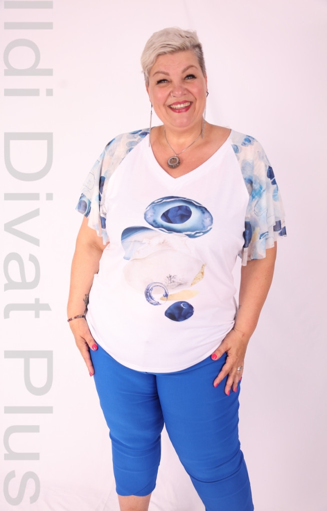 Livello Fehér-Kék Mintás Hálós Ujjú Felső-M