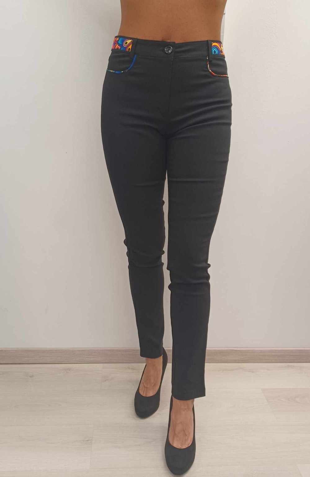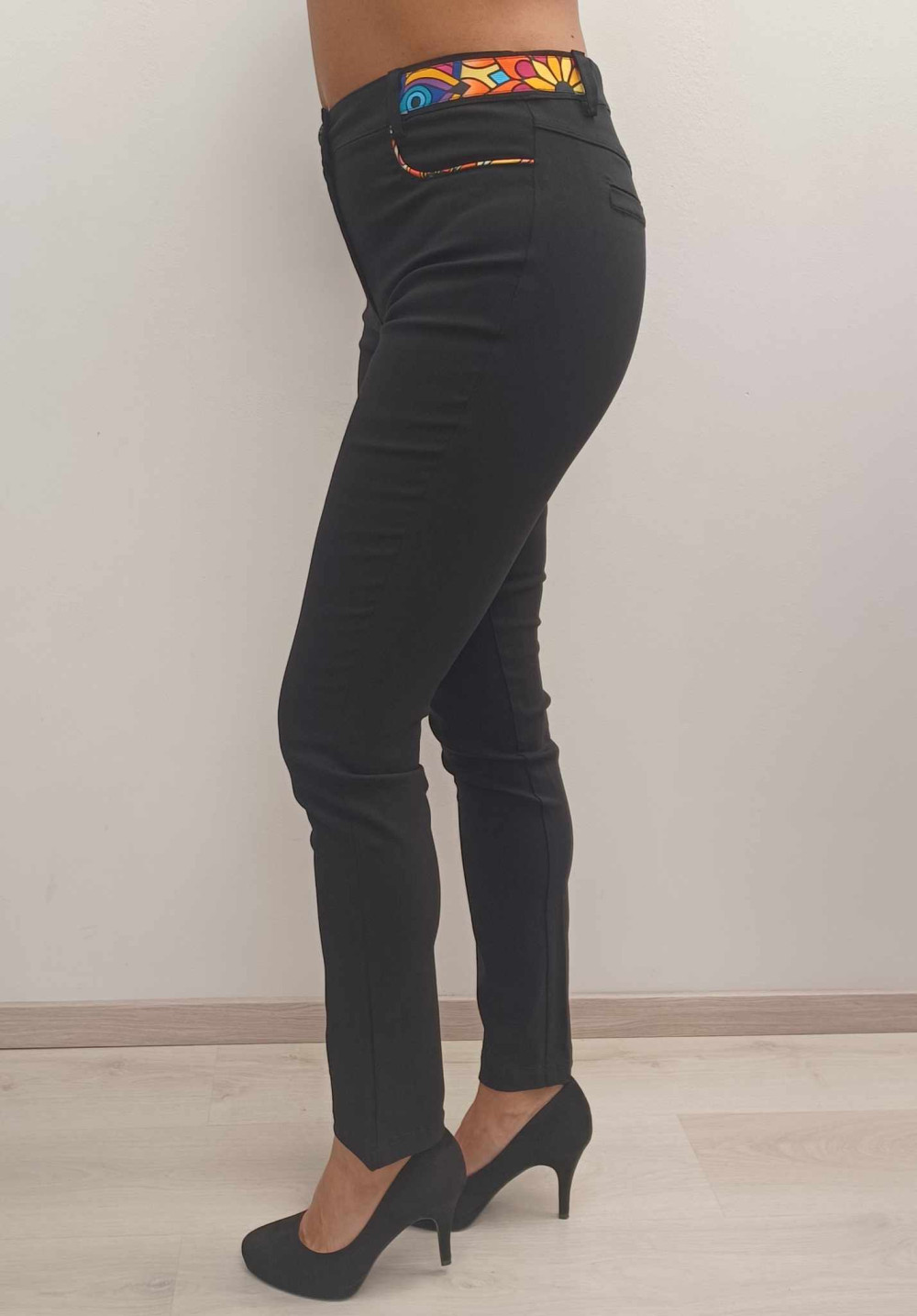 Fekete színű gombos zippes derekán mandala mintás bengalin nadrág