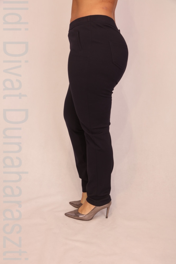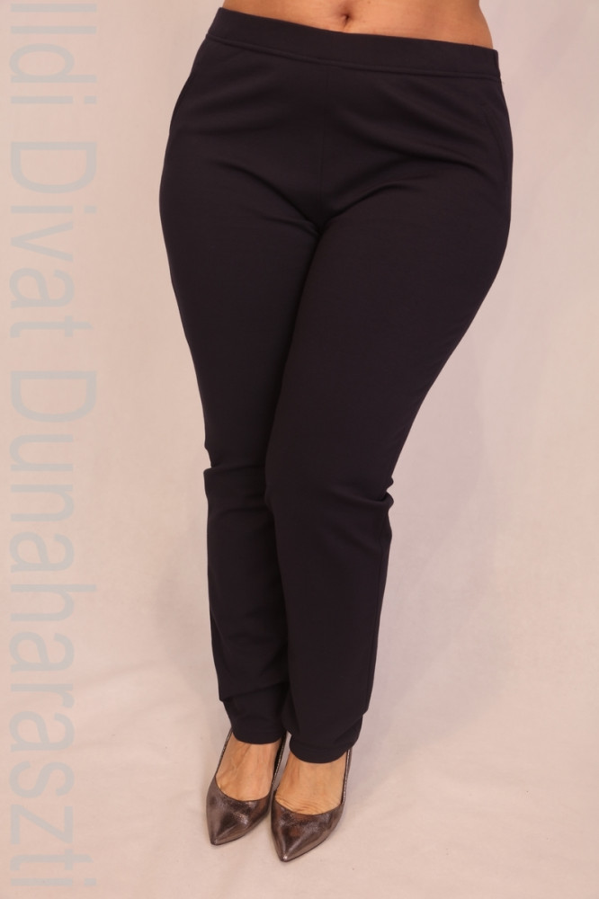 Sötétkék színű, gumis derekú és sztreccses anyagú nadrág.