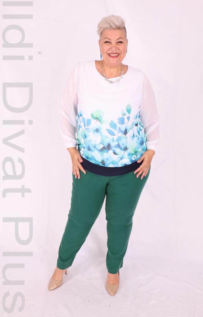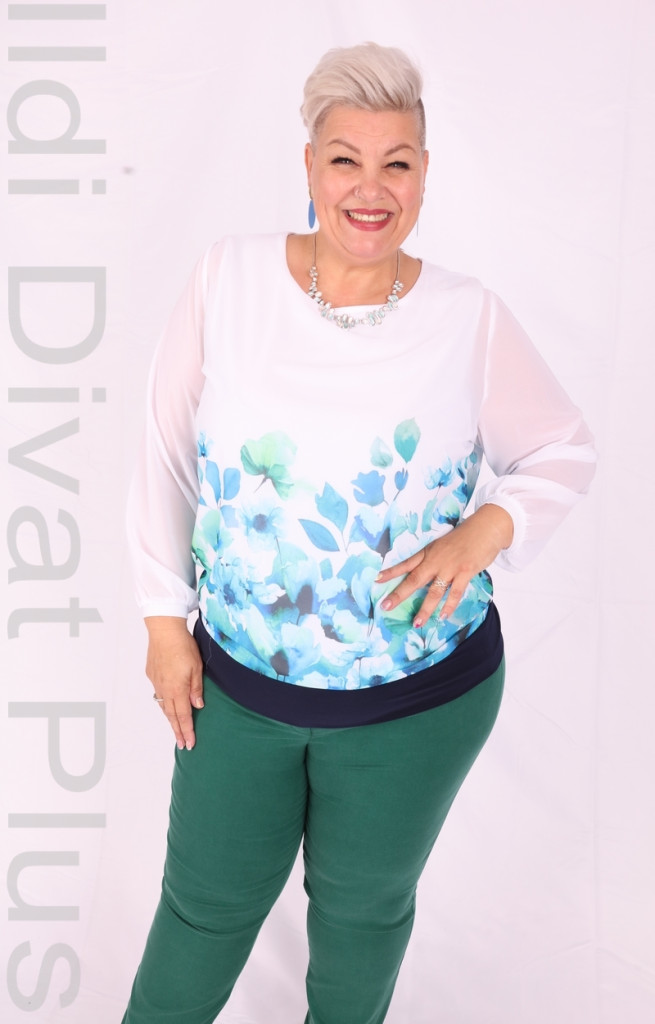 Livello Di Vita fehér alapon kék-zöld virágmintás alján passzás blúz
