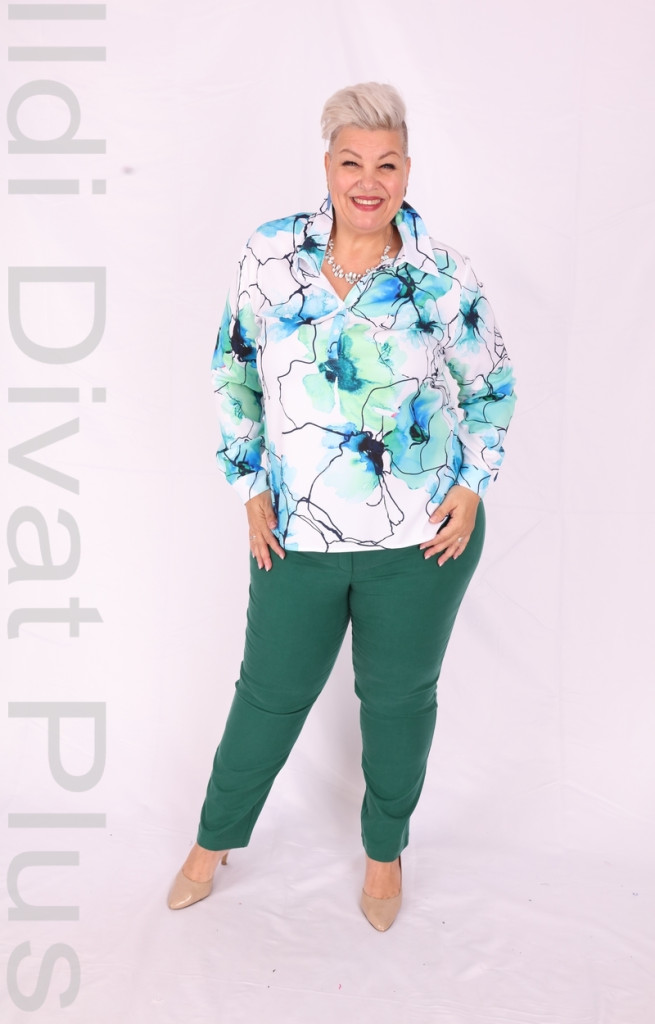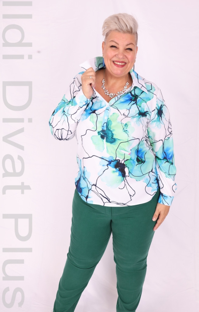 Livello Di Vita fehér alapon kék-zöld virágmintás galléros nyakán gombos ing.