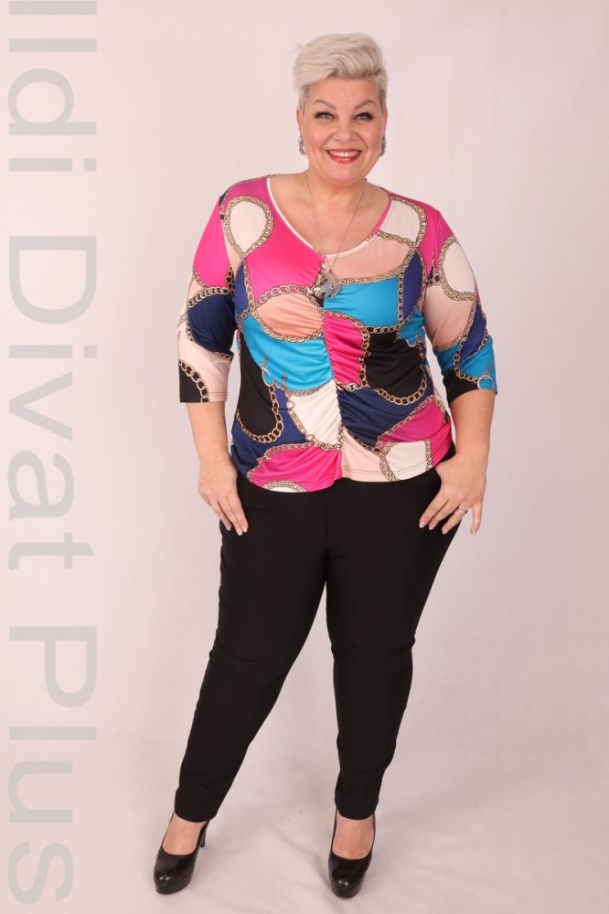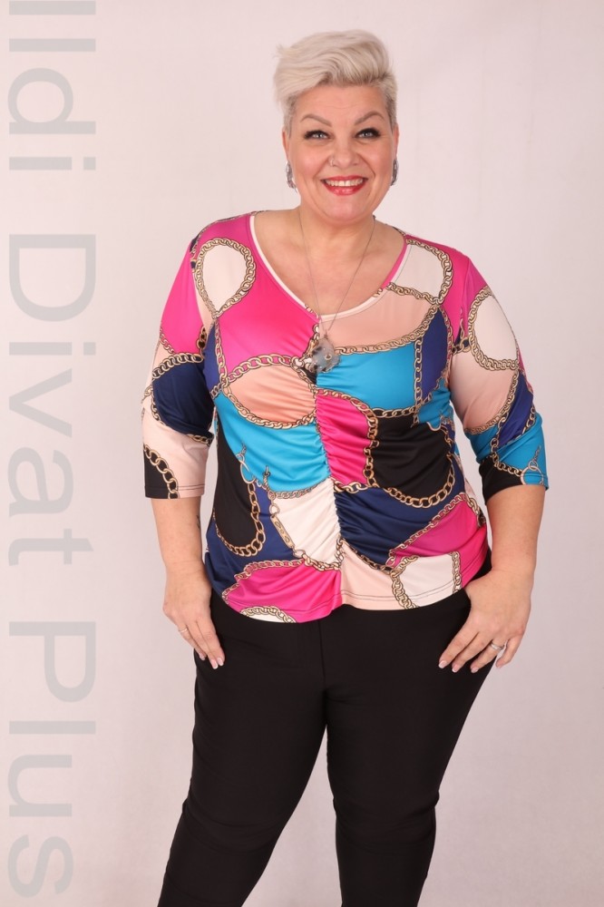 Livello Di Vita színes lánc mintás, V-kivágott, középen húzott, karcsúsított fazonú felső.
