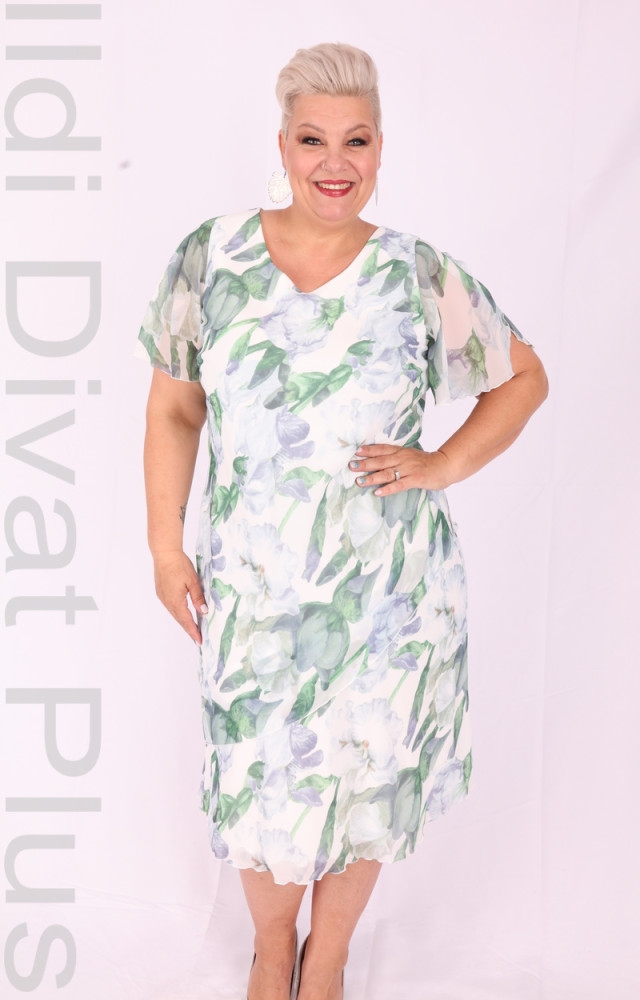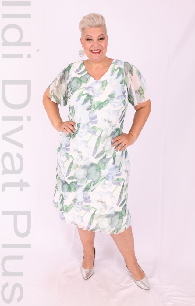 Exclusíve Kék-Zöld Virágos Muszlin Ruha