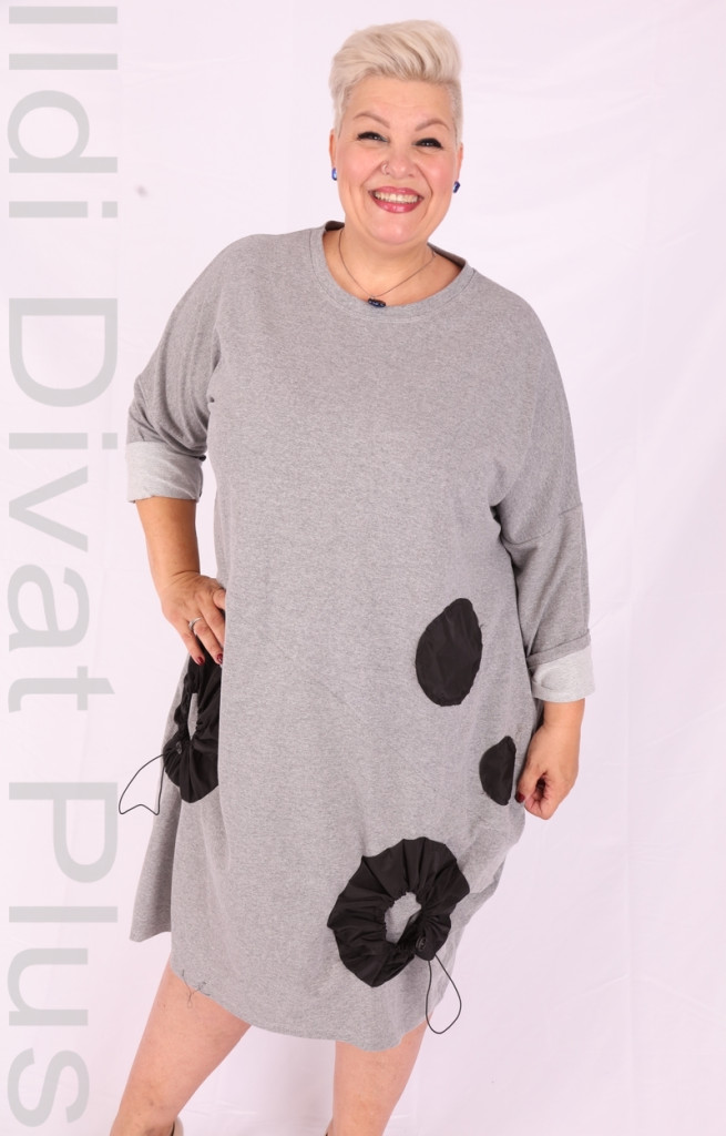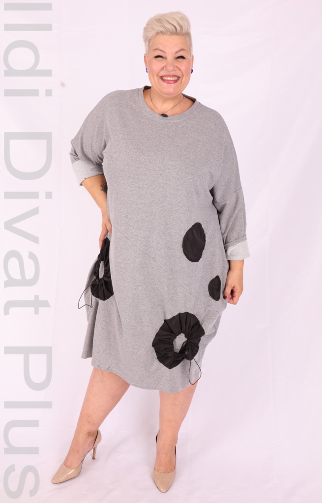 Lux Luna Szürke-fekete virágos L-Xl-2Xl méretre ajánlott egyméretes ruha.