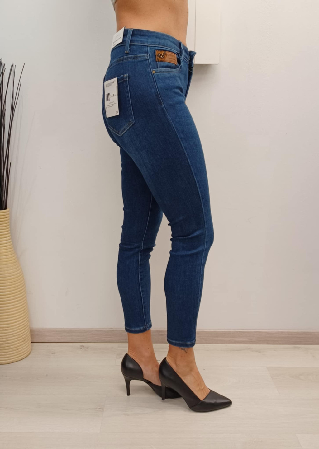 M Sara farmerkék gombos zippes szűkszárú farmer nadrág.