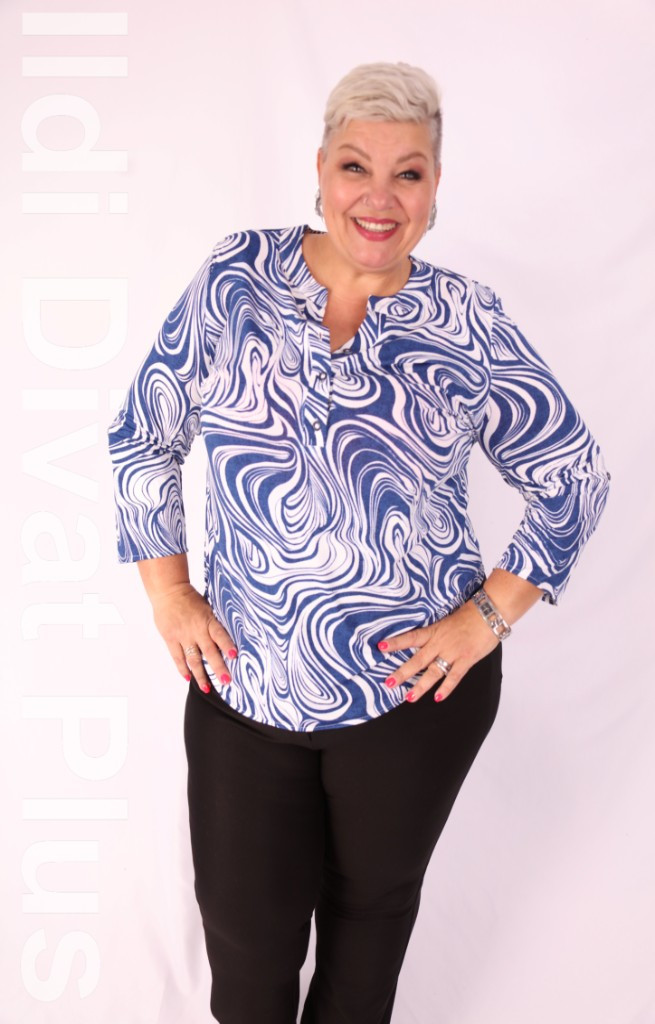 Maxi Lady Kék-Fehér Mintás Tunika-50