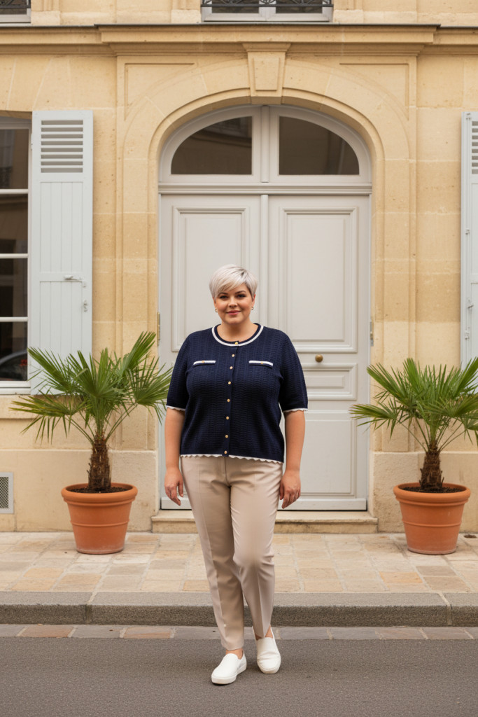 Micha sötétkék-fehér horgolt elején gombos kardigán