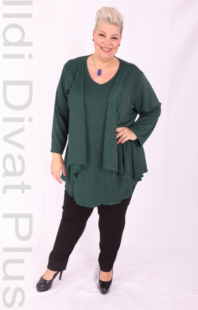 Mira zöld-ezüst színű, V-kivágott, lezser fazonú felső.