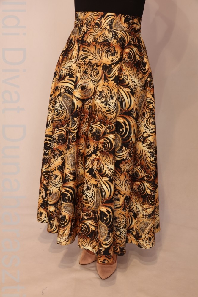 Mystic Day fekete alapon arany inda mintás, lefelé bővülő fazon maxi szoknya.
