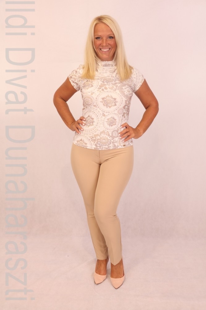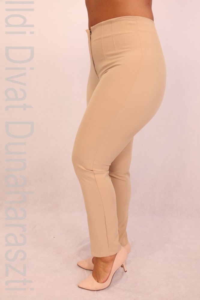 Mystic Day bézs színű, magasított derekú, élére vasalt, elején cipzáros, elegáns nadrág.