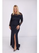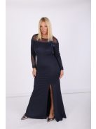 Mystic Day csillogós sötétkék színű, tetején és ujján necc betétes,elején sliccelt,maxi ruha.