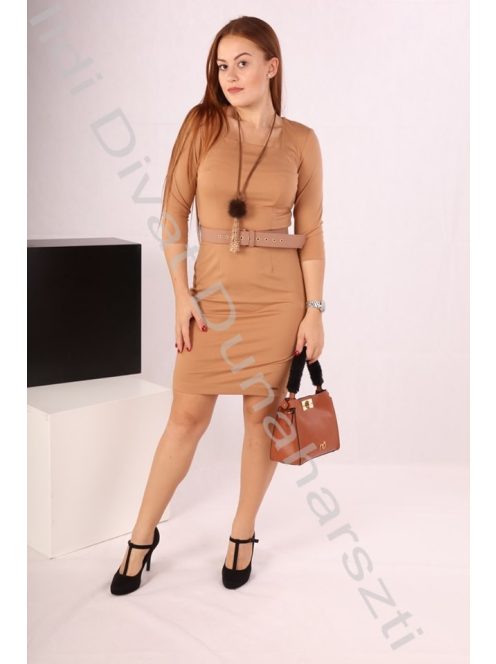 Mystic Day barna színű, karcsúsított fazonú derekán öves ruha.
