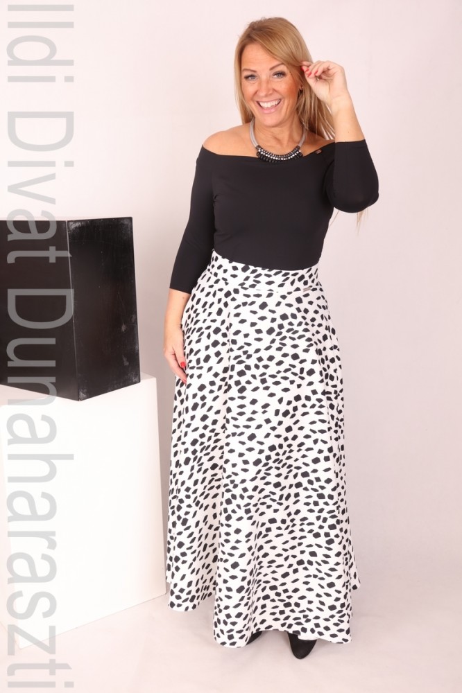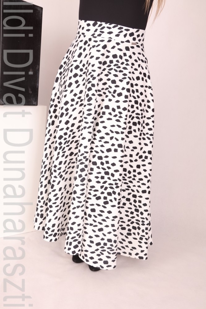 Mystic Day fehér alapon fekete kristály mintás, lefelé bővülő fazon maxi szoknya.