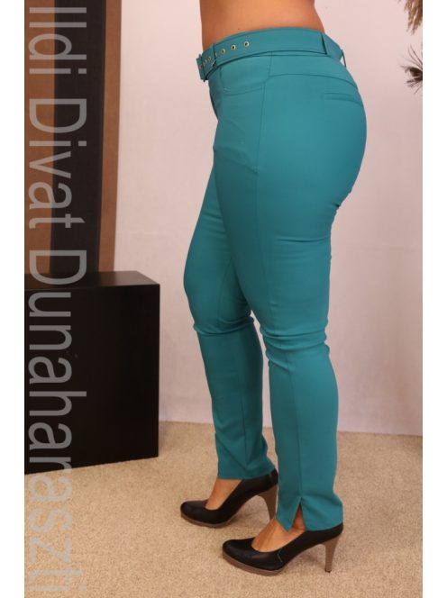 Mystic Day smaragd zöld színű, derekán öves és gombos, zsebes, elegáns nadrág.