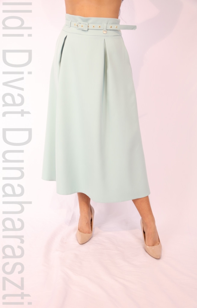 Mystic Day zsálya színű, derekán öves, zsebes, A- vonalú szoknya.