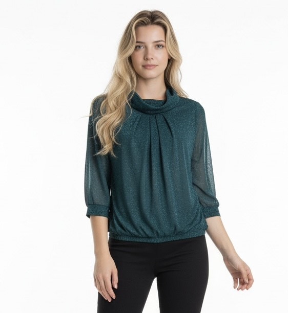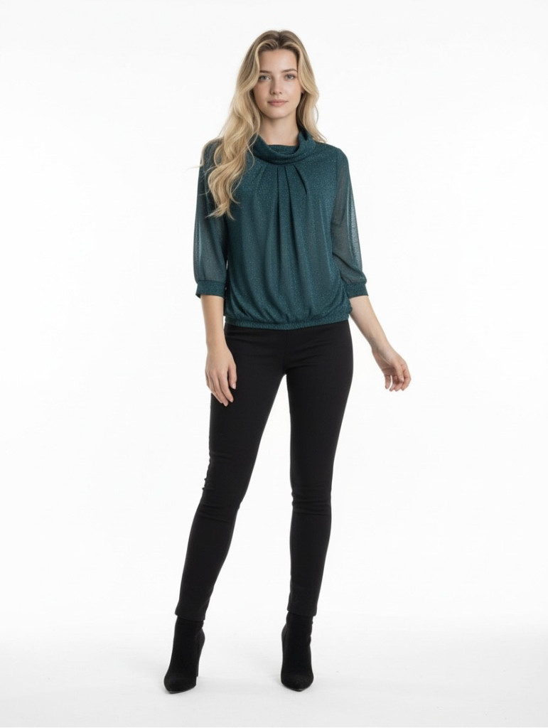 Nika Smaragd-zöld csillogós alján gumis blúz.