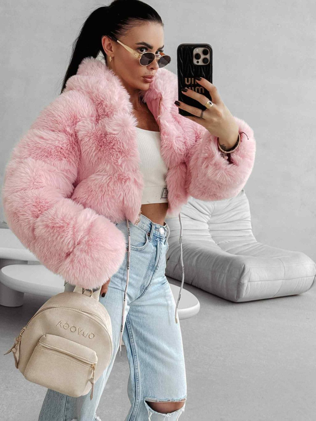 O'La Voga rózsaszín zippes kapucnis szörős bunda kabát.