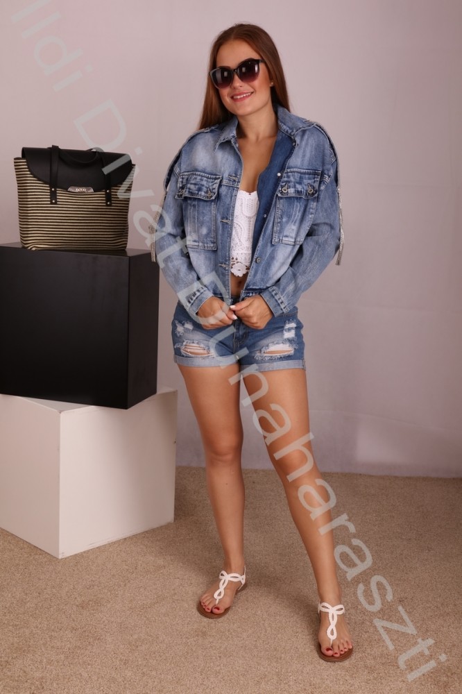 O'La Voga vállán strasszos, lezser fazonú farmer kabát.