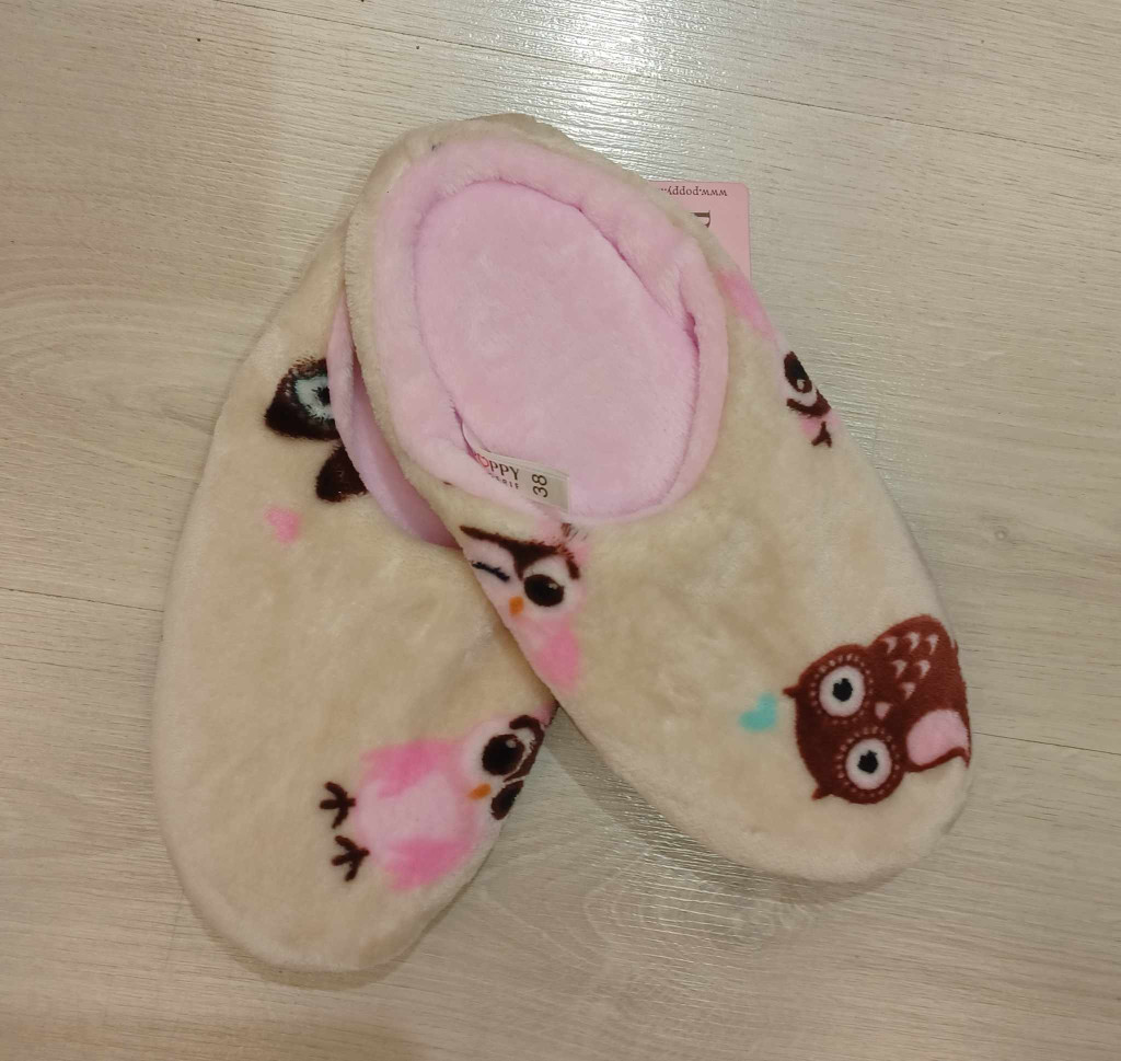 Poppy pink-beige bagoly mintás pihe-puha házi papucs