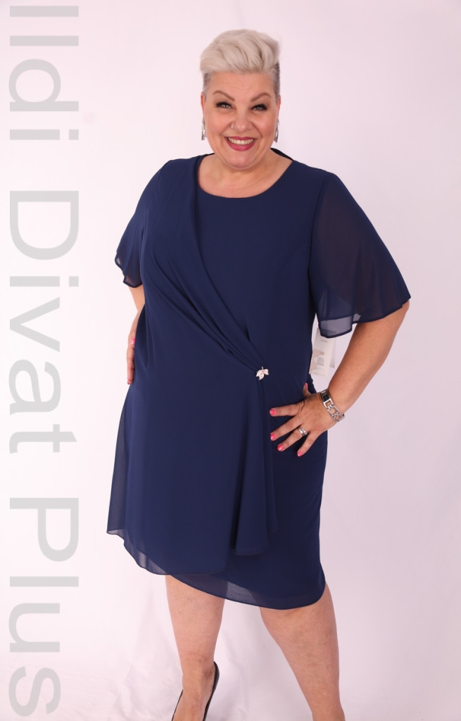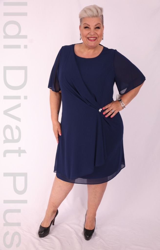Rea sötétkék oldalán húzótt muszlinos alkalmi ruha.