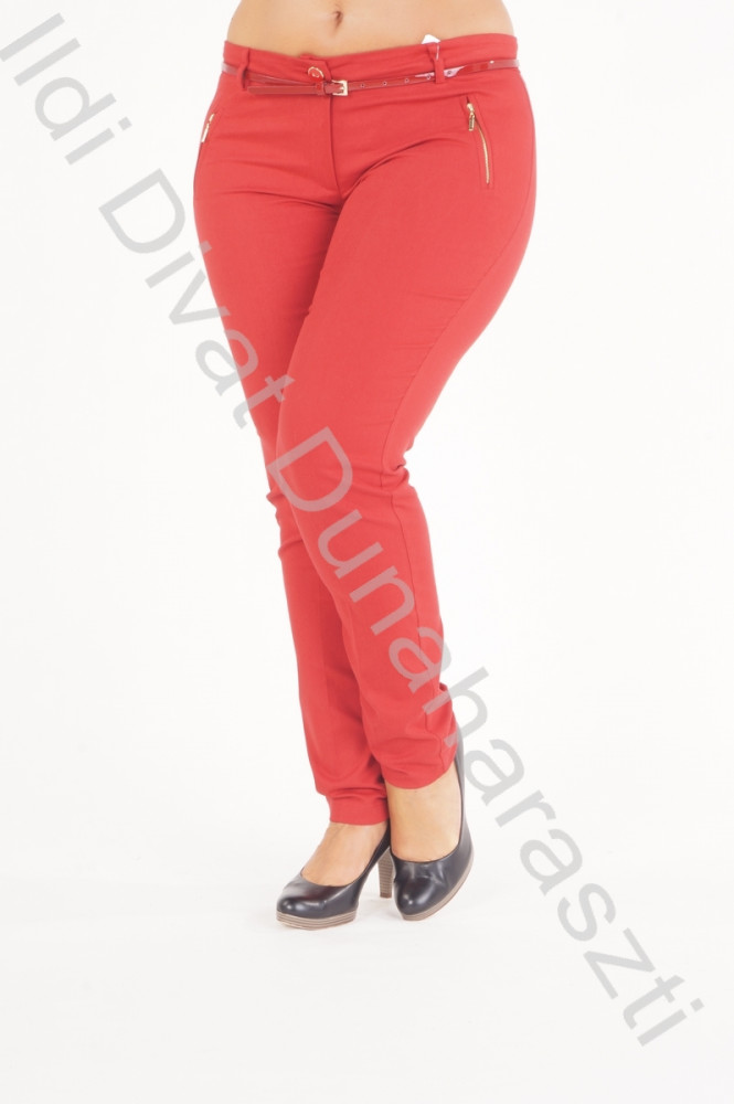 Rouge Avenue piros színű, élére vasalt, derekán öves, díszzsebes, elegáns nadrág.