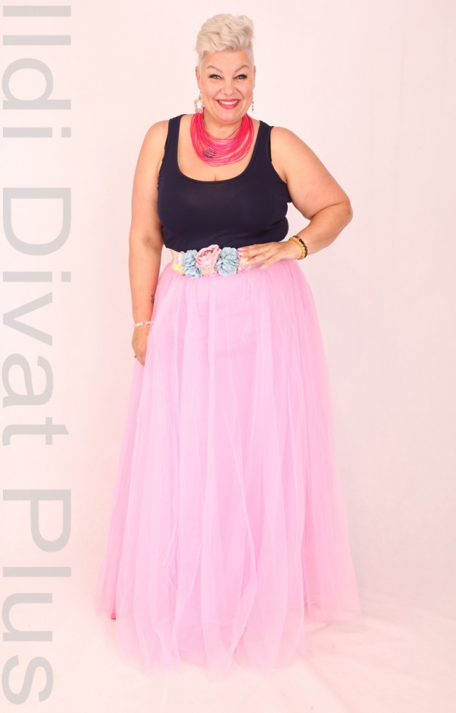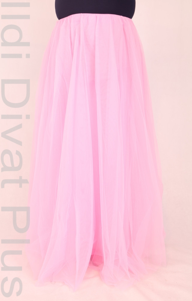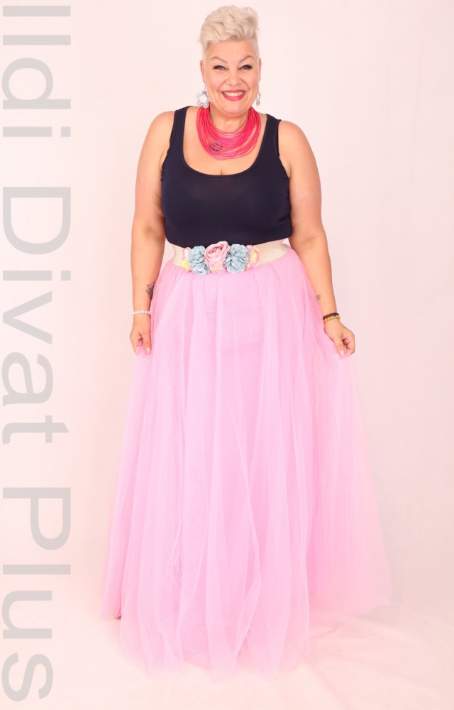 Rózsaszín színű, gumis derekú, maxi tüll szoknya.