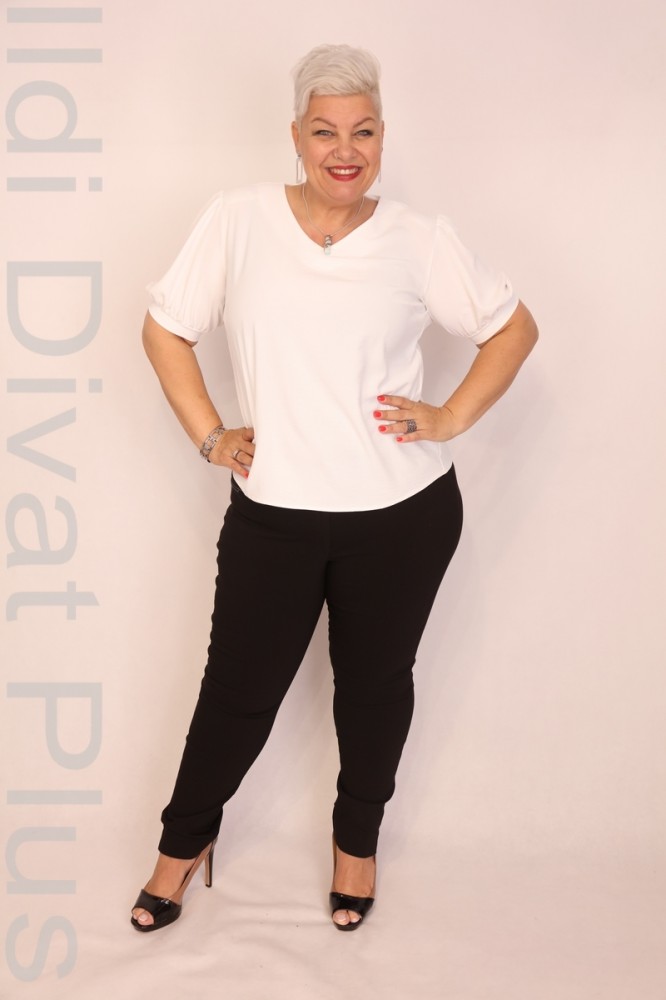 Sabrina ekrü színű, V-kivágott, enyhén karcsúsított fazonú felső.