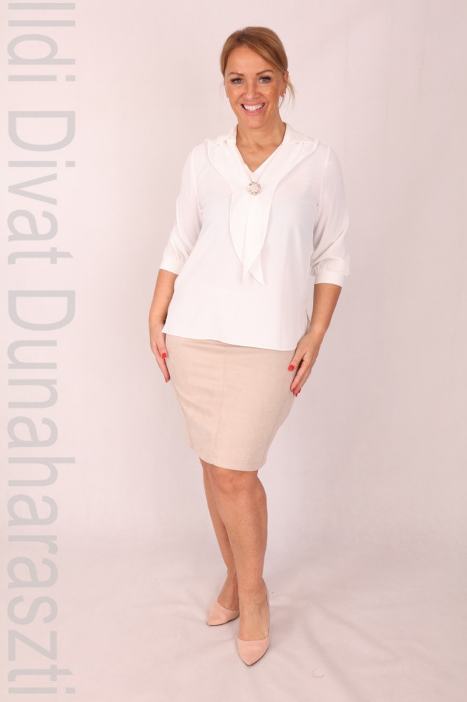 Selent fehér színű, galléros, nyak résznél gyöngy díszítéses, lezser fazonú blúz.