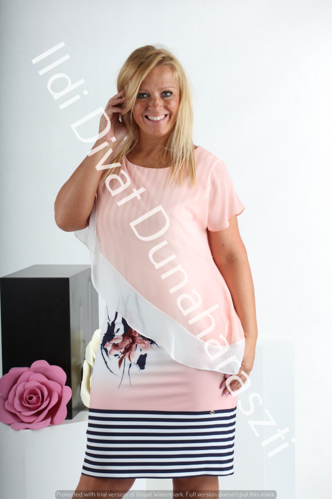 Silver Moon púder-fehér színű, kerek nyakú, muszlin rátétes, karcsúsított fazonú ruha.