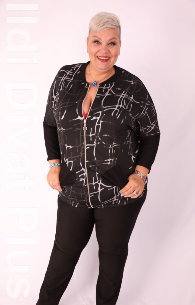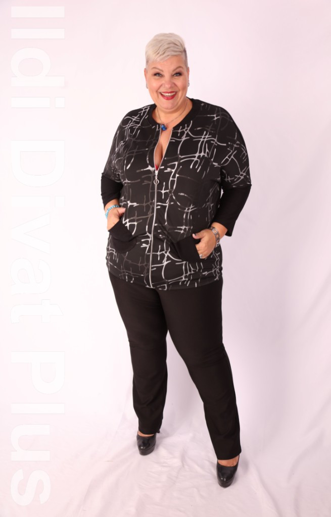 Sinyora fekete-ezüst mintás zippes tunika.