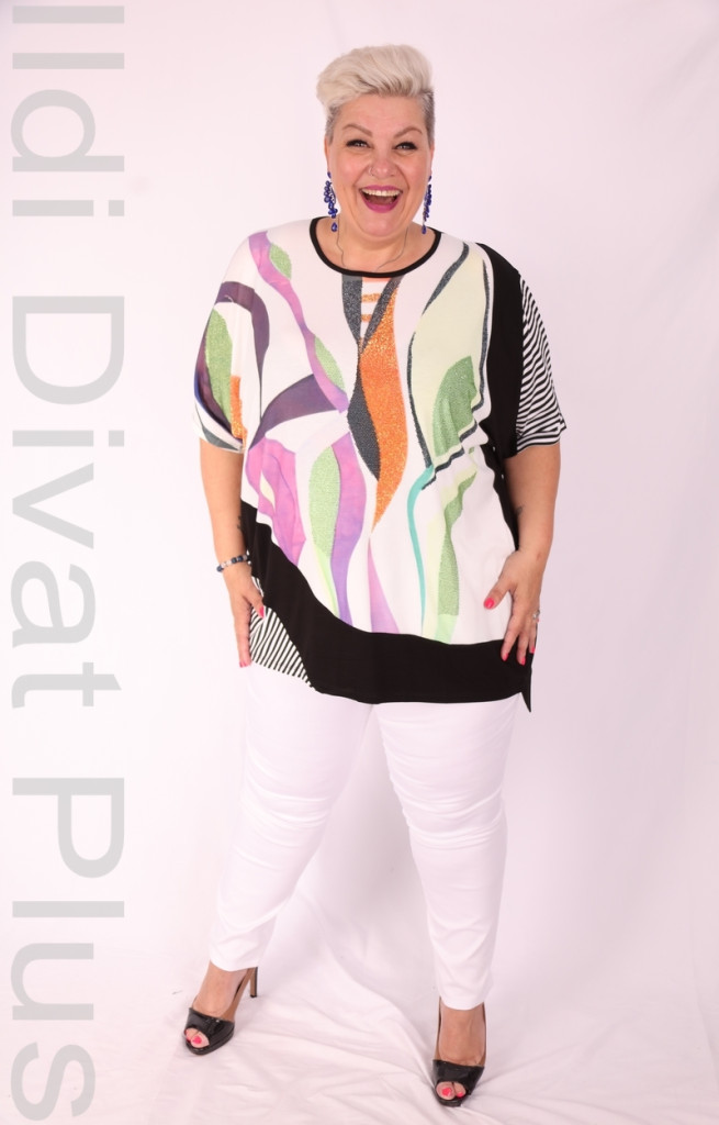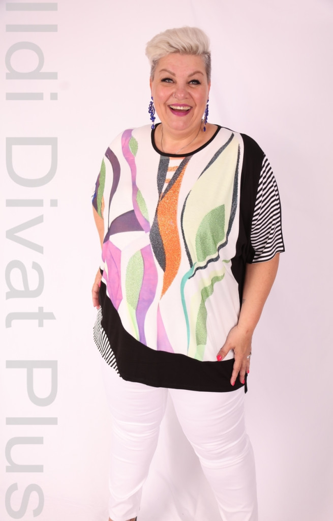 Sinyora Fekete-Fehér Színes Köves Mintás Tunika