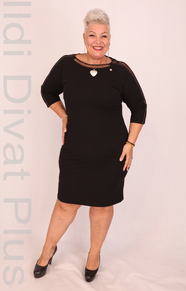 Trynite fekete színű, arany díszítétes, necc betétes, karcsúsított fazonú ruha.