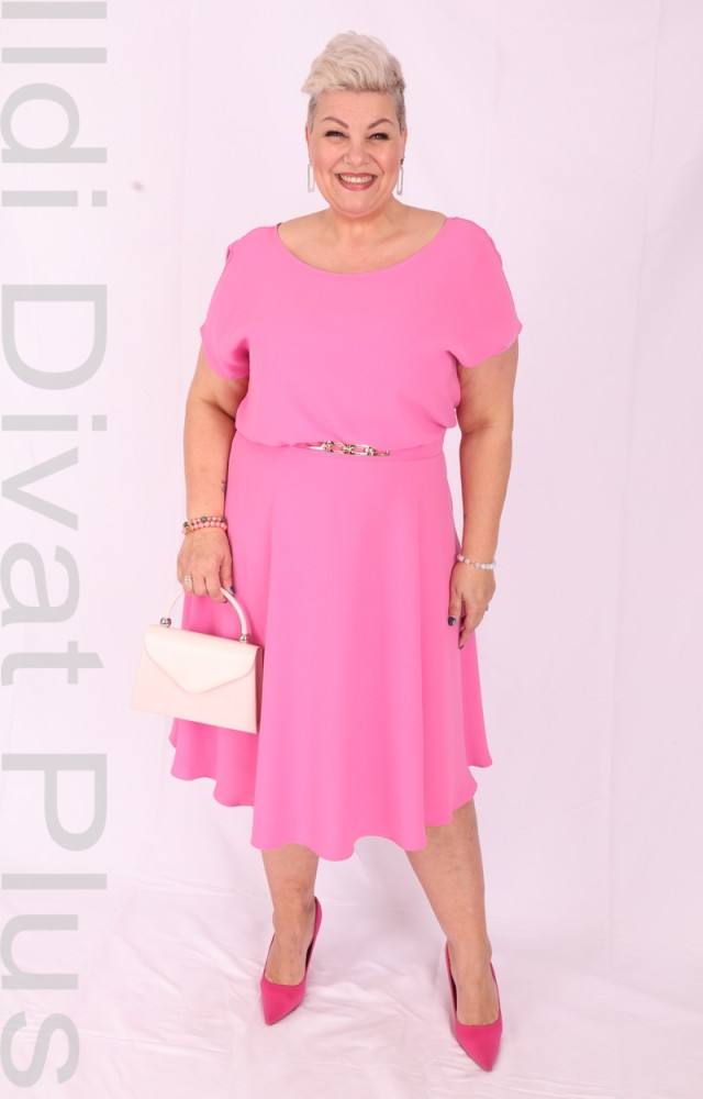 Trynite pink színű, kerek nyakú, derekán díszcsatos, A-vonalú alkalmi ruha.