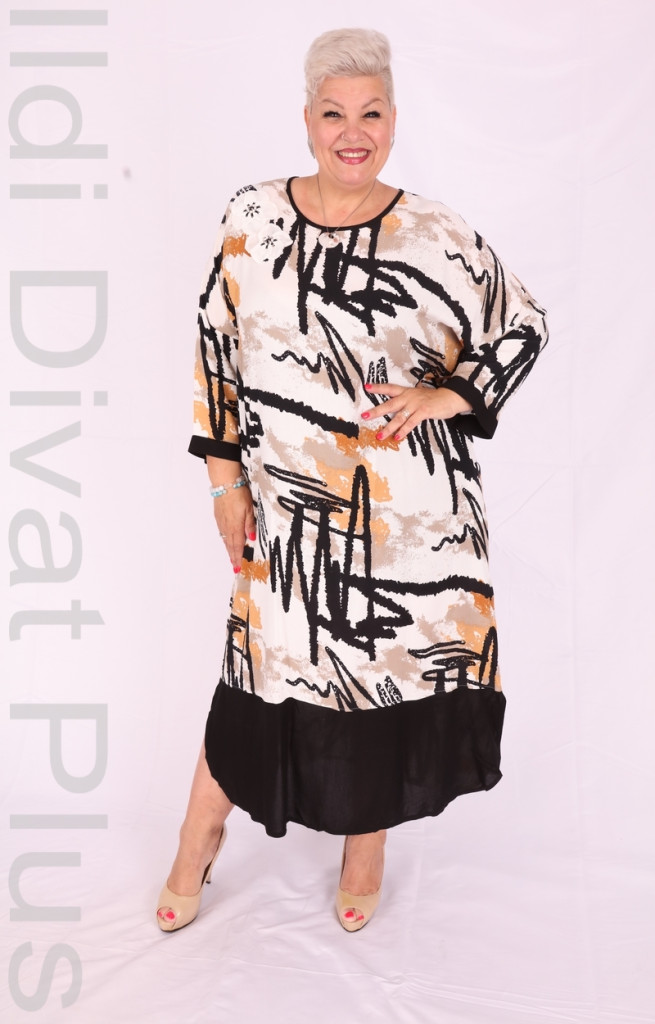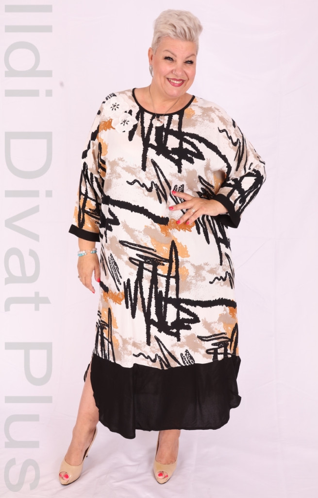 Fehér alapon Fekete-barna mintás ruha.
