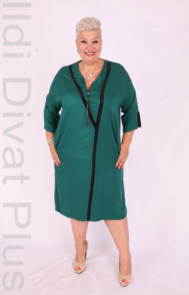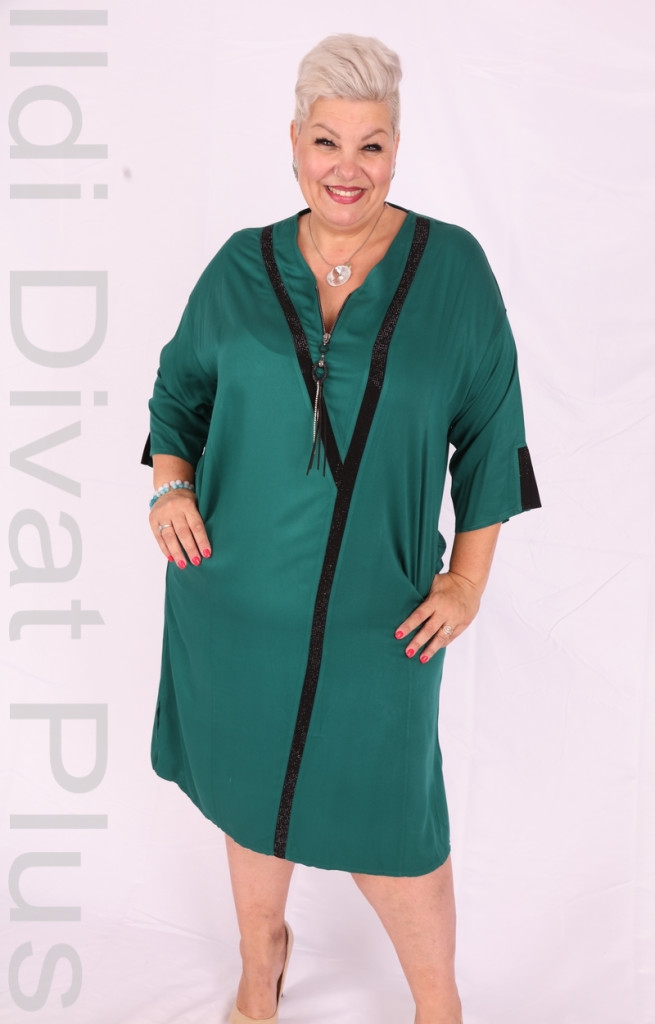 Smaragd-zöld fekete köves zippes nyakú ruha.