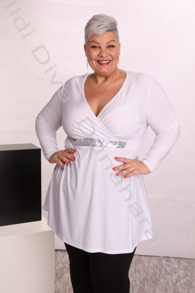 Flitterrel kombinált, dekoltált alkalmi felső.