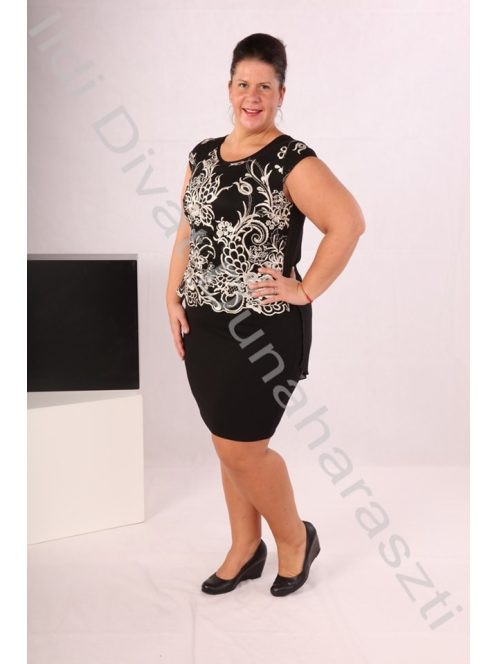 Zita fekete-arany színű, kerek nyakú, ujjatlan, karcsúsított fazonú ruha.
