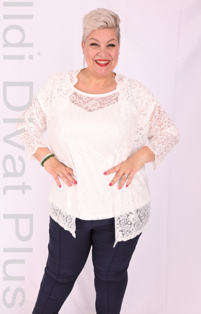 Zita Fehér Csipke Felső+ Kardigán-XL