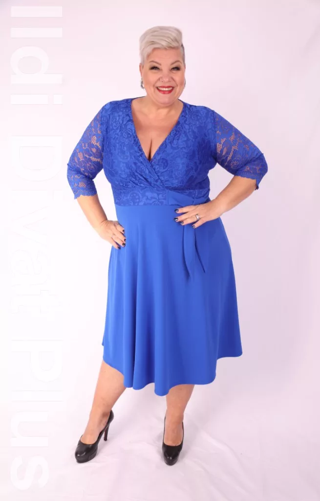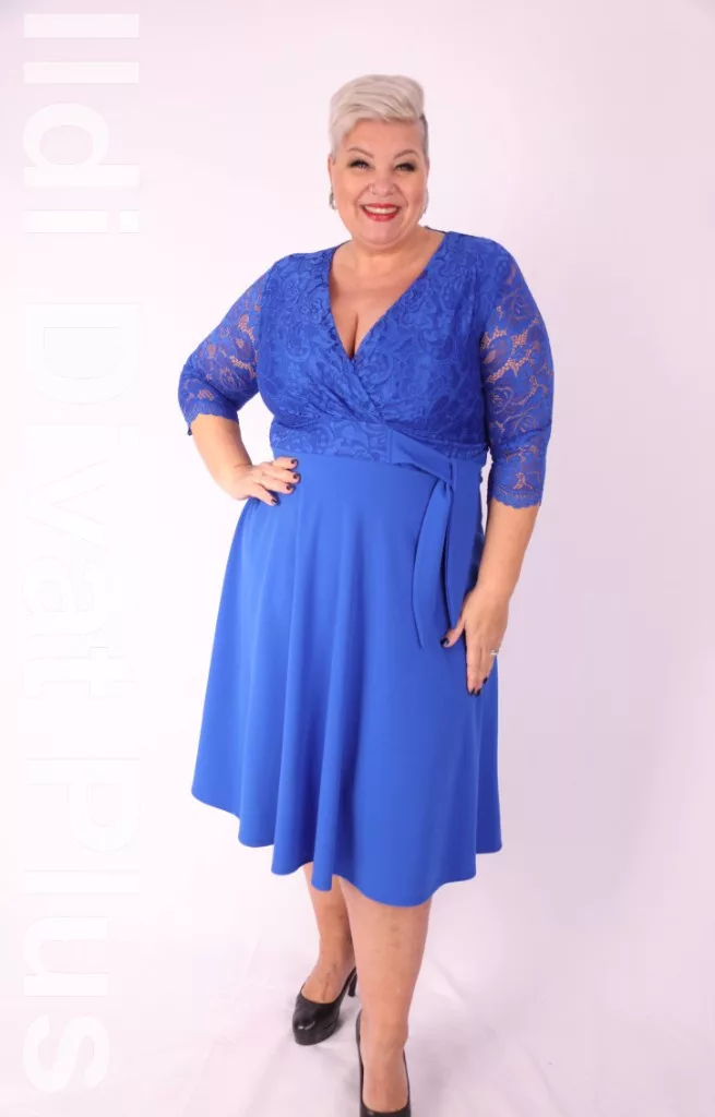 Zita Királykék 3/4 ujjú csipkés tetejű A vonalú ruha.