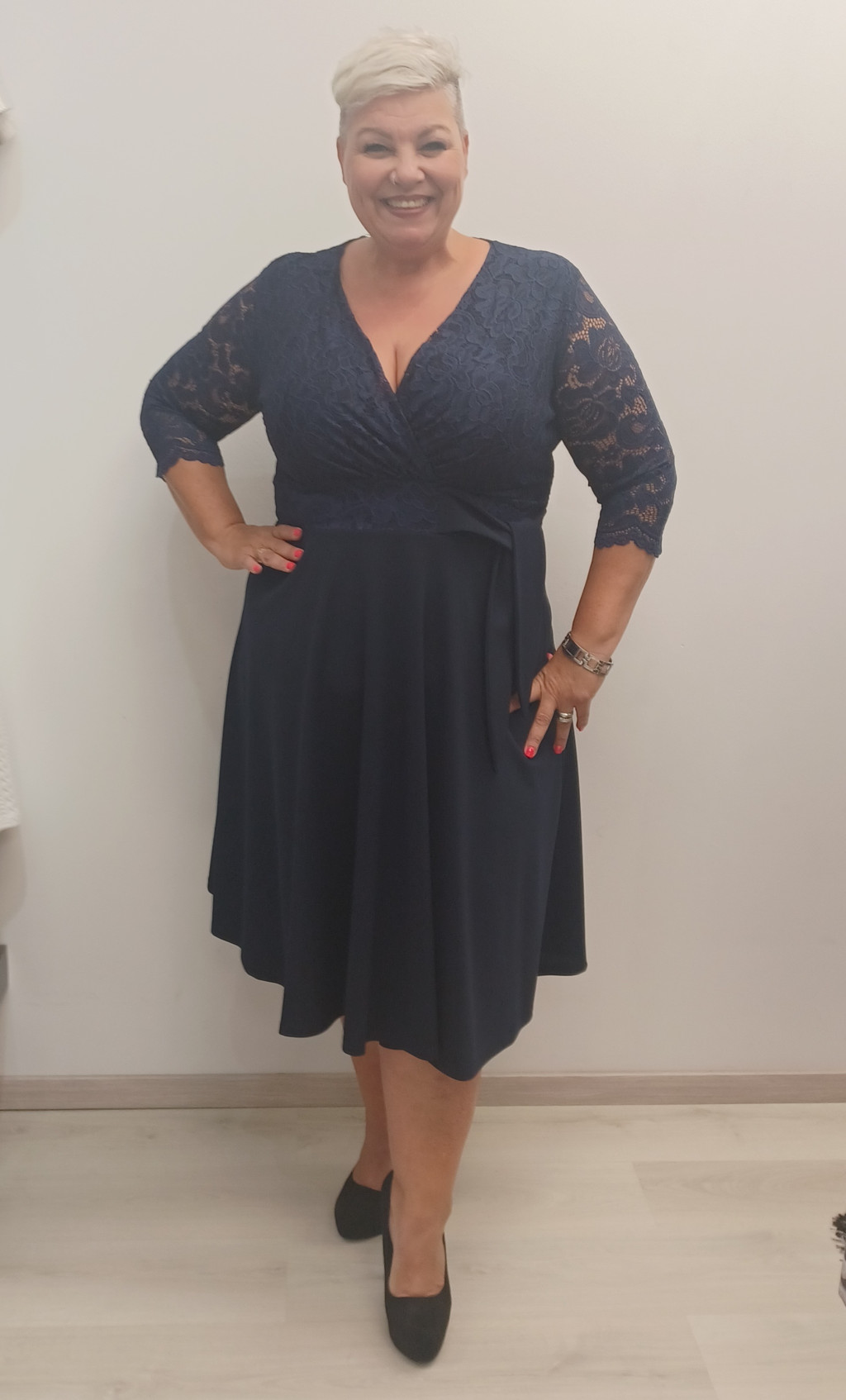 Zita Sötétkék Csipkés 3/4 Ujjú Ruha