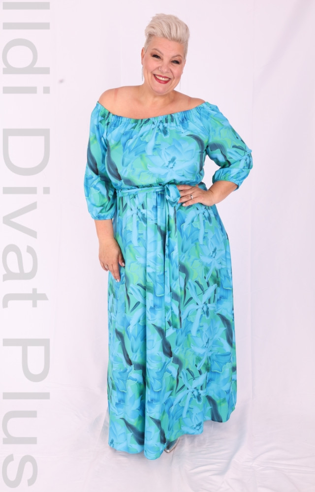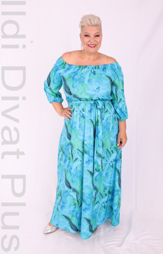 Trynite Kék-Zöld Virágos Maxi Ruha