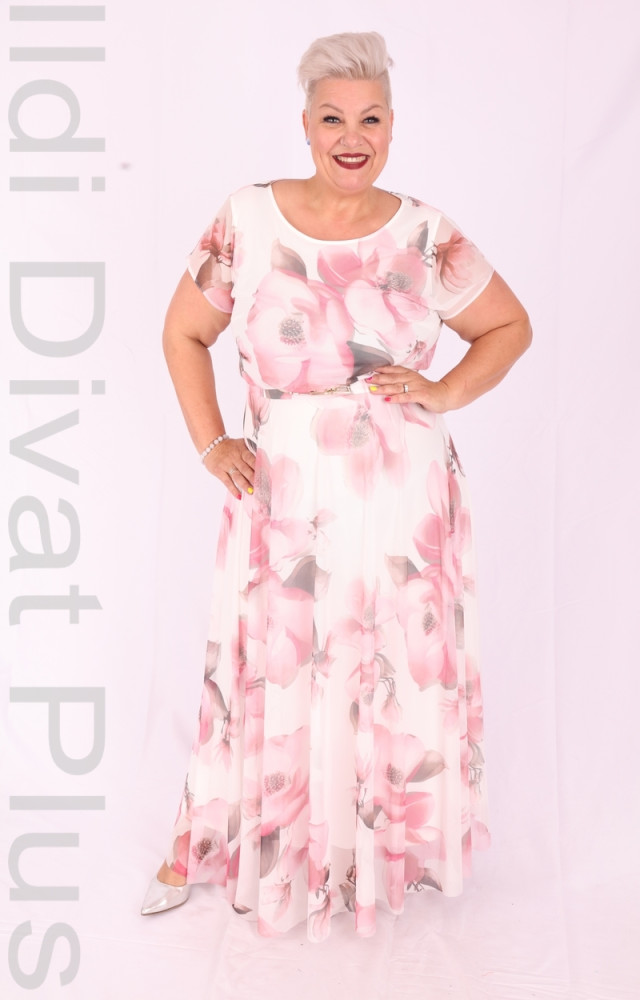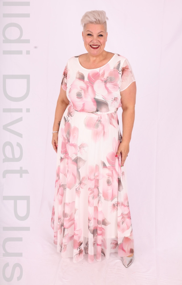 Trynite Ekrü-Púder Virágos Maxi Ruha