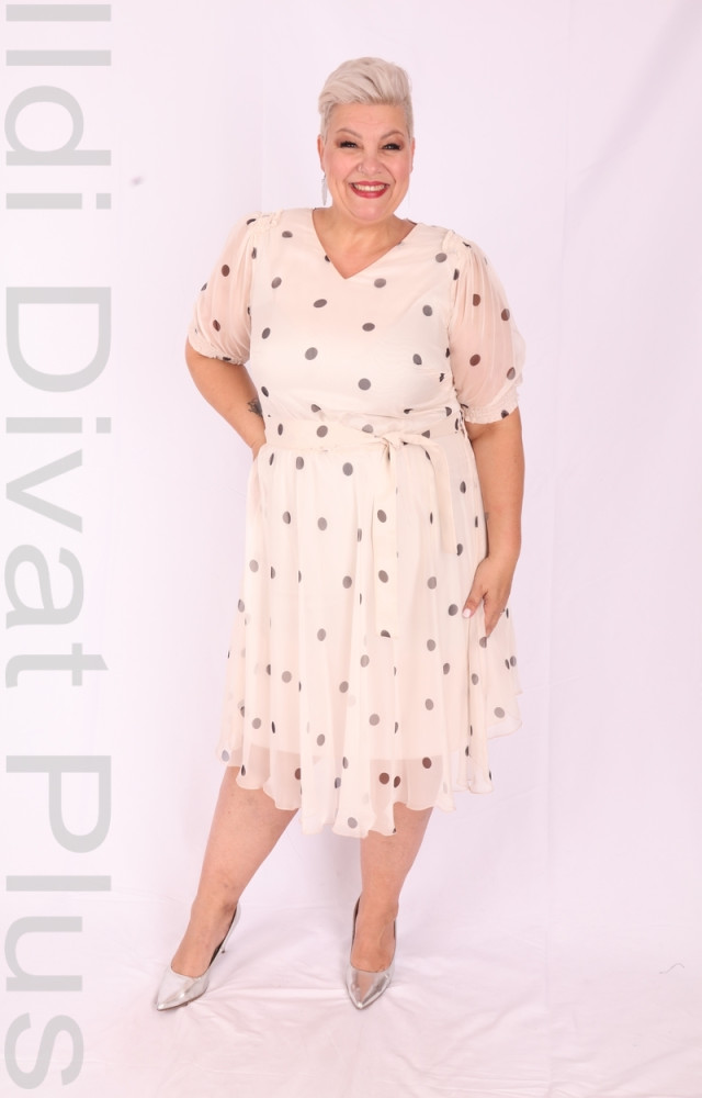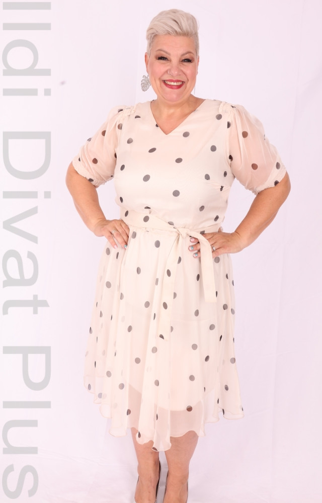 Margo Beige-Fekete Pöttyös Muszlin Ruha