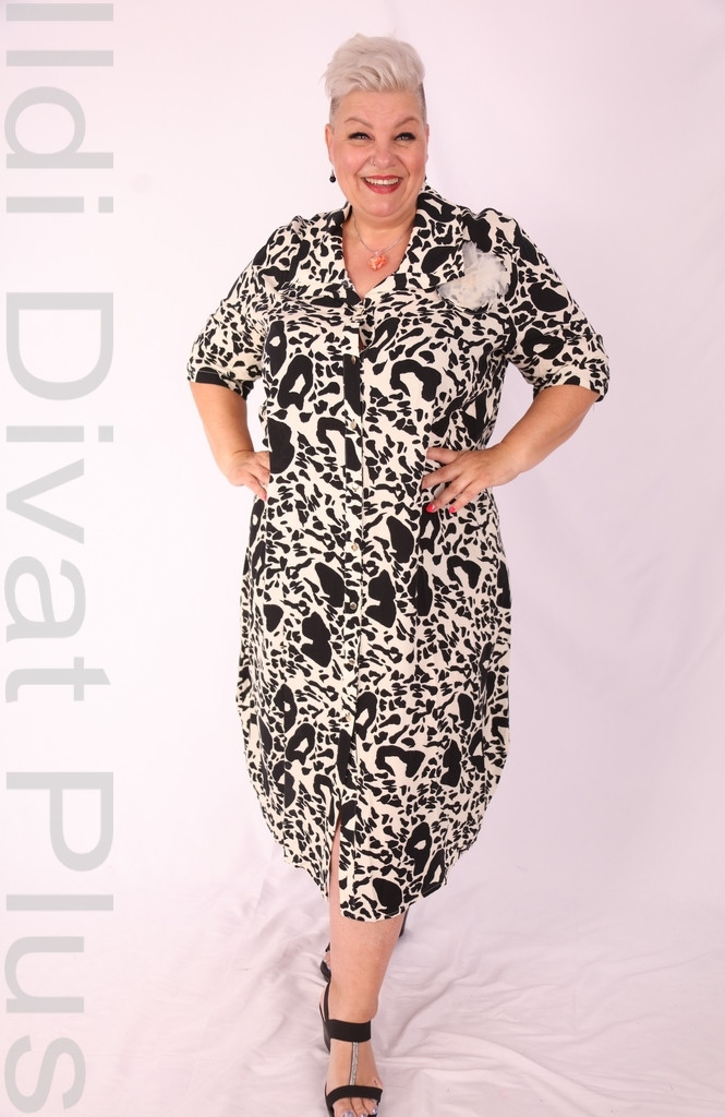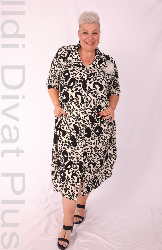 Darkwin Ekrü-Fekete Mintás Denna Ruha