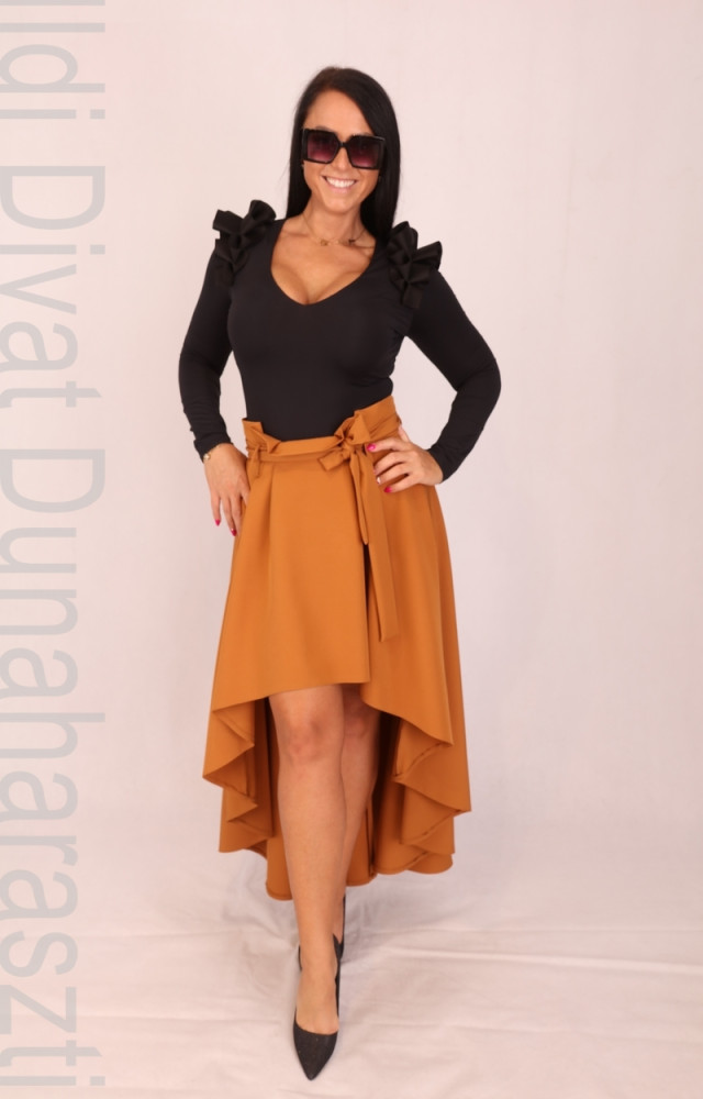 Envy Fekete Ujjas Fodros Vállú V Body